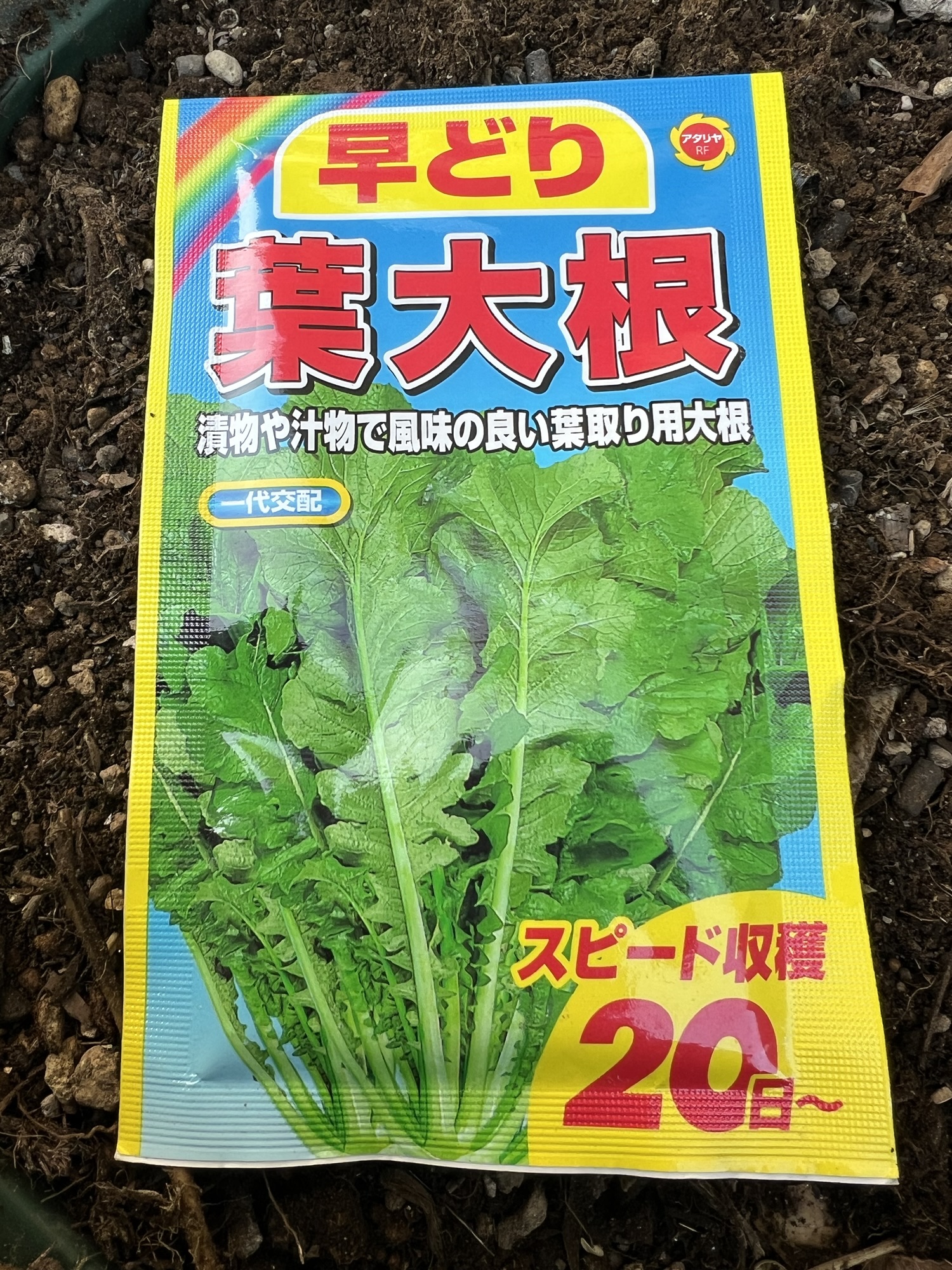 種まき後、20日〜30日ほどで収穫できるとの記載があります。収穫の回転が早い方が、後々のスペースの融通がききますし、1番楽しい収穫作業がたくさんあってお得(?)です。