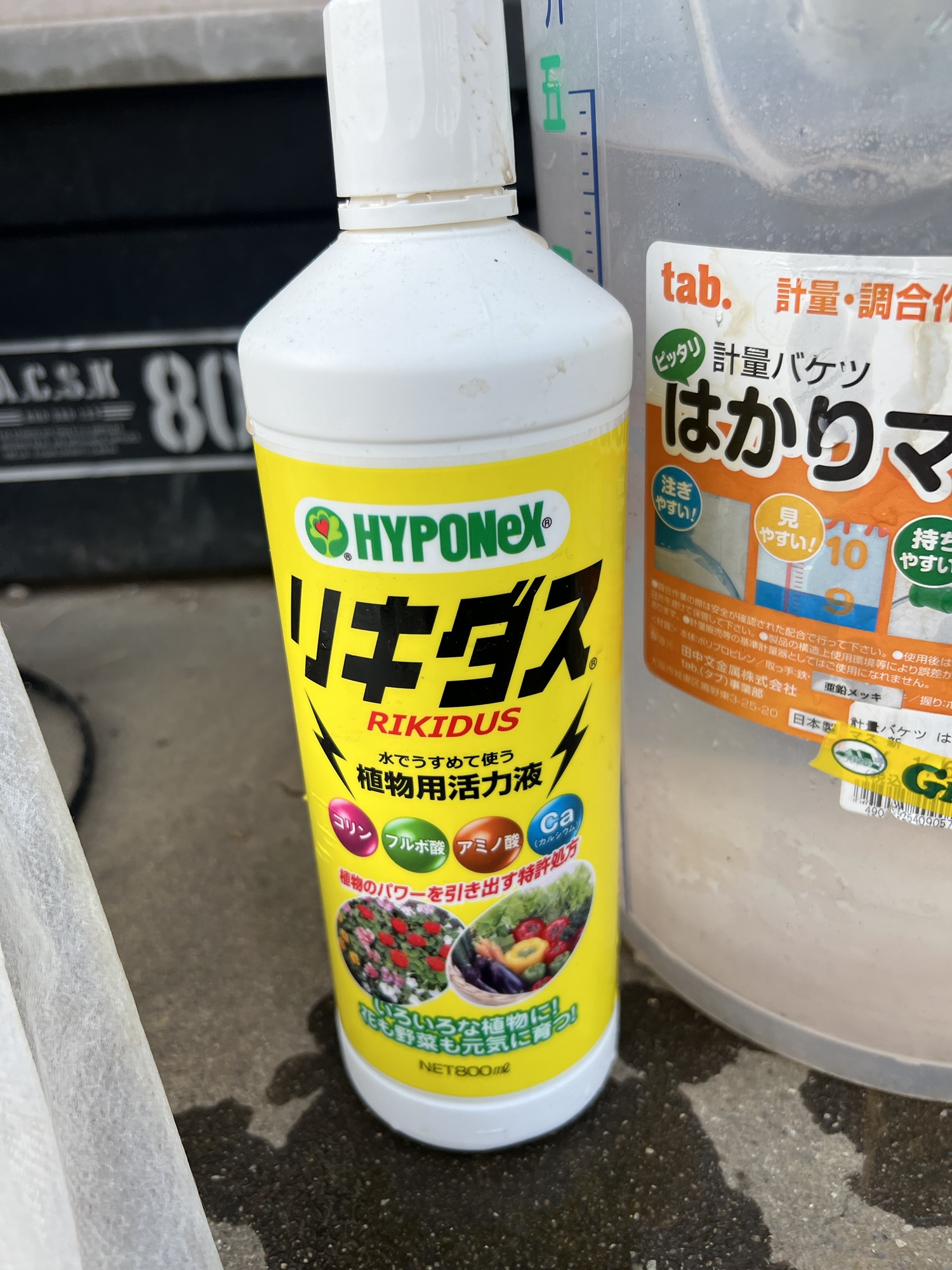 鉢底から水がしっかり流れ出るまで、水をやります。発芽の促進にハイポネックスさんのリキダスを使いました。