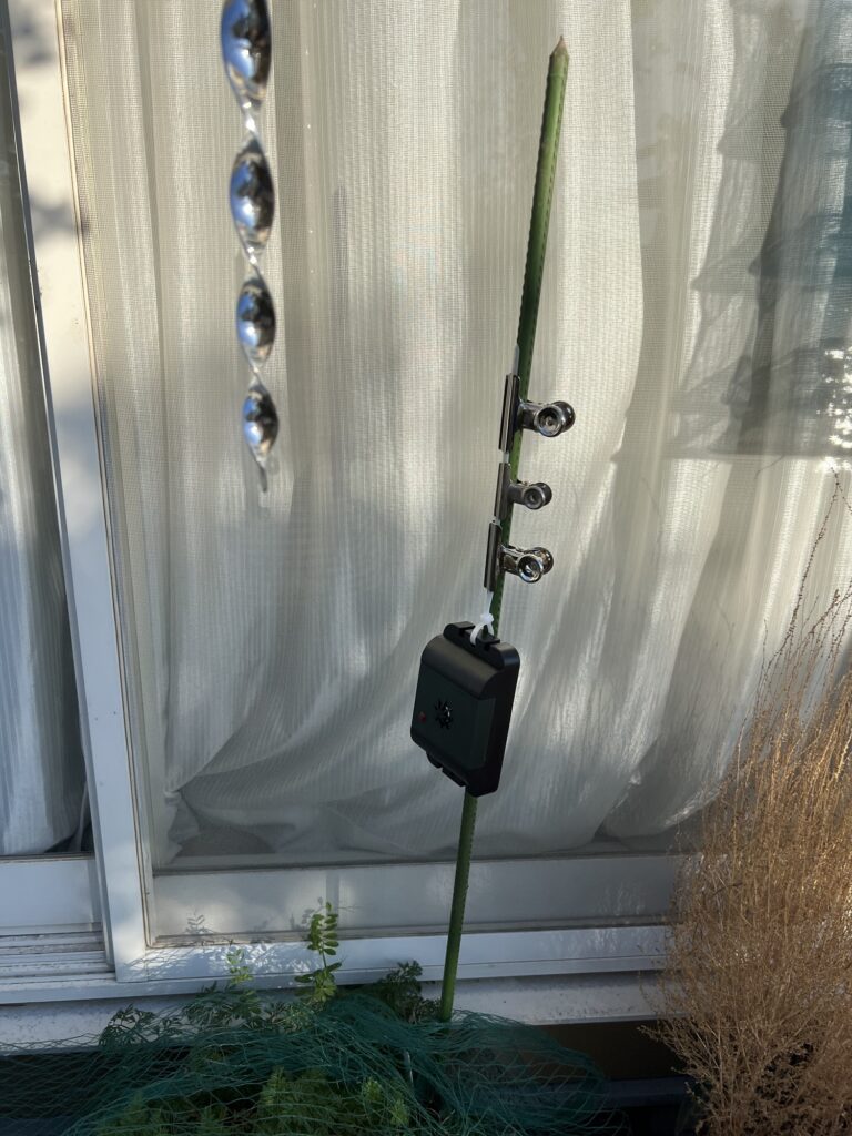 設置してみた感じがこちら、設置する場所もなく支柱にクリップをつけて立ててみました。